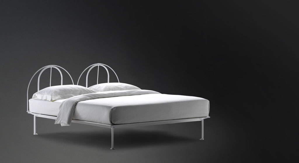 This compact bed surround rises up to form the soft, luxurious headboard; its curves are highlighted by the exposed stitching that runs along the entire perimeter. It is available with a pocket spring base.